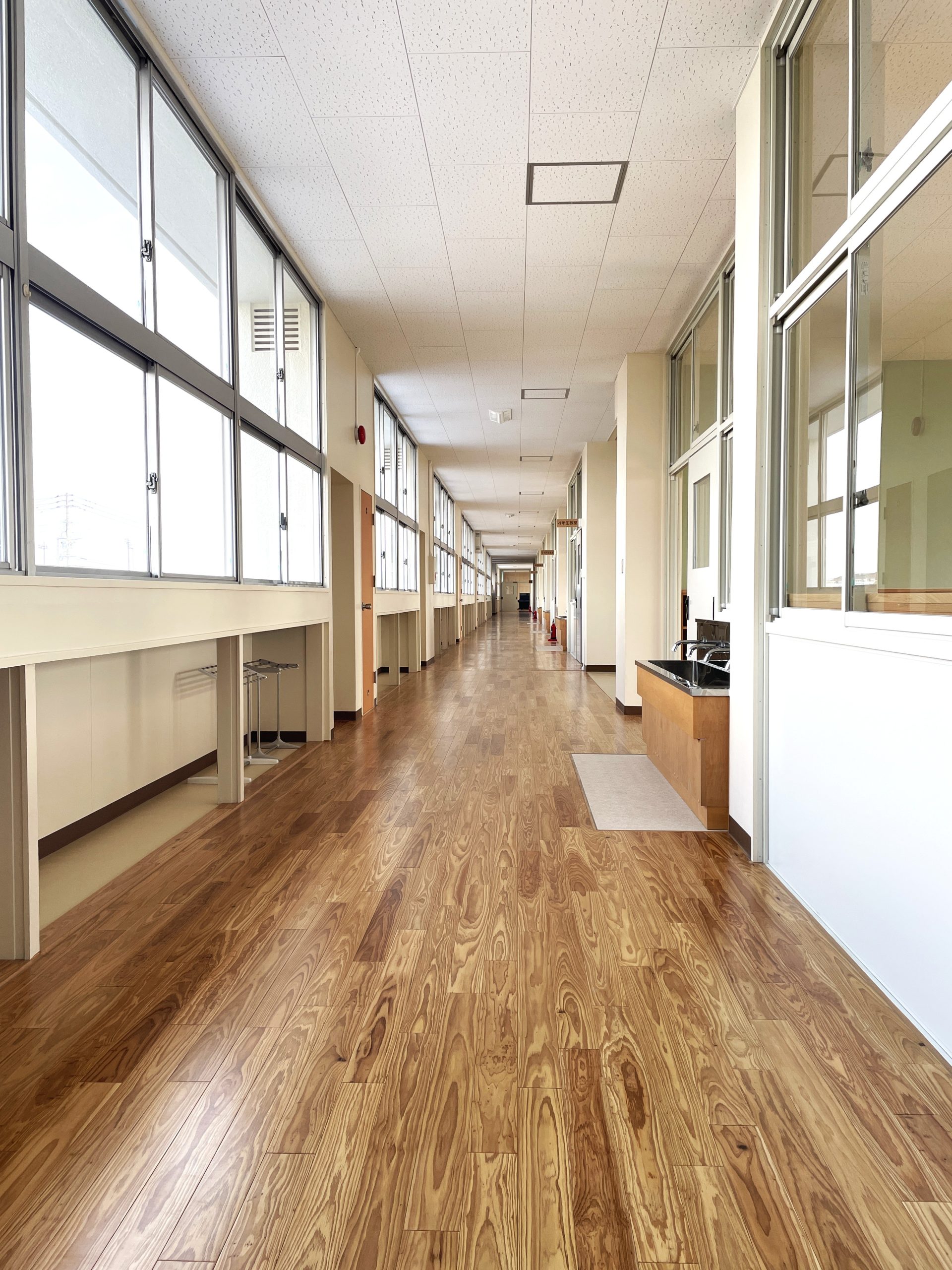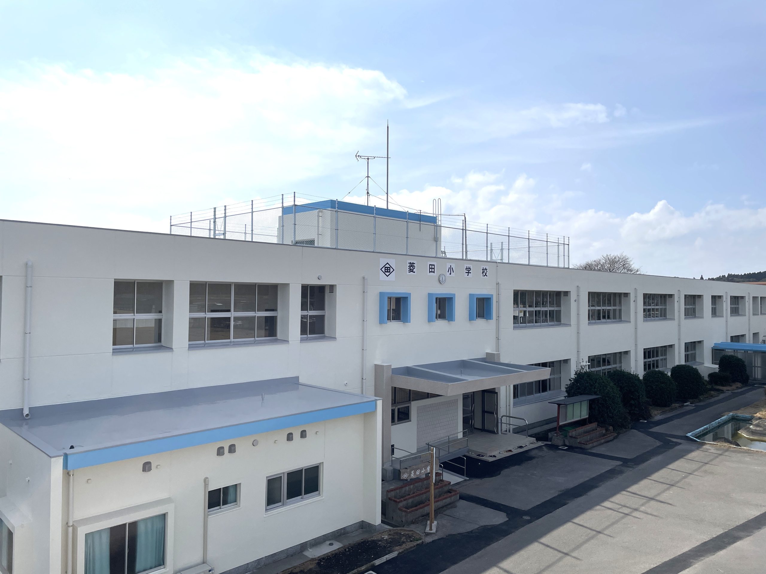菱田小学校校舎等長寿命化改良工事 大崎町立菱田小学校の校舎等長寿命化改良工事を施工させていただきました。 木をふんだんに使用した内装は落ち着きのあるイメージで、新築と変わらないほどの仕上がりです。 菱田小学校は創立151周年を迎えた輝かしい歴史を誇る学び舎であり今回の工事におきましては、全ての教職員と児童の皆さんの幸福を目指すため、これまで以上に安全で快適に、そしてわくわくするような気持ちで学校生活を送れる環境づくりを目指しました。 竣工:2026年2月